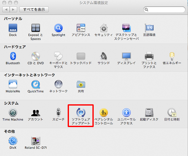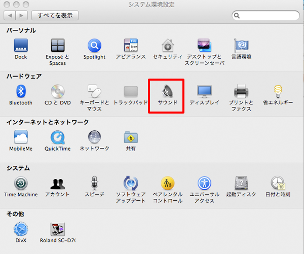 (1)「システム環境設定」を起動します。「サウンド」をクリックします。