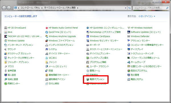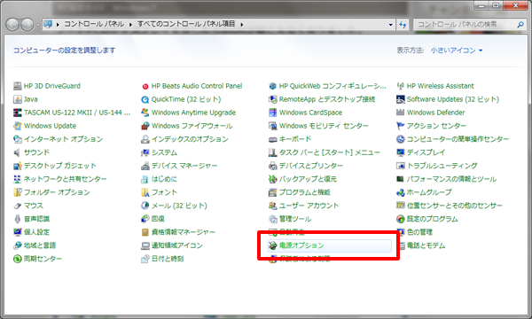 「電源オプション」をクリックします。