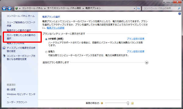 (2)「カバーを閉じたときの動作の選択」をクリックします。