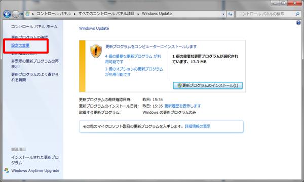 (2)「設定の変更」をクリックします。